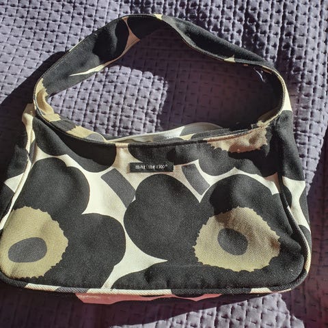 Myynnissä Marimekko pinkki unikko käsilaukku