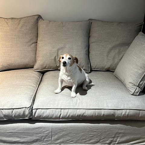 Koiratalous, mutta sohvasta on pidetty hyvää huolta ja on hyvässä kunnossa. Myydään, koska on meidän kämppään liian iso.