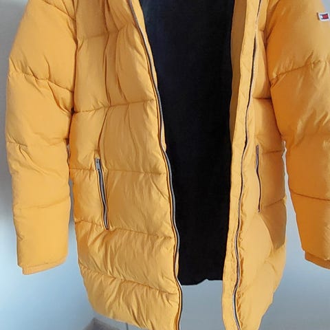 Tommy Hilfiger Hilfiger Denim pitkä takki sinisenä, naisten koko L. Takki on pitkähkö ja siinä on vetoketjukiinnitys sekä etutaskut. Sisävuori on punainen, ja takissa on irroitettava huppu.