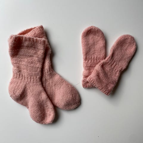 Kahdet pitkävartiset villasukat n. 1-vuotiaalle. Yhden talven olleet välillä käytössä.