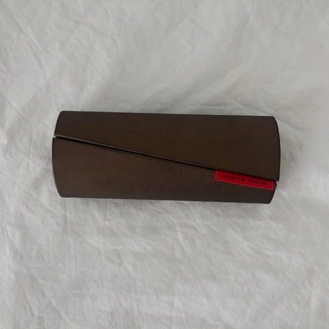 Aito Chloe -merkin kova kotelo. Avaamaton, käyttämätön silmälasipyyhe. Saranat jäntevät, silti sujuva avata.