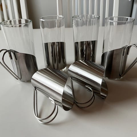 Juoma näkyy kauniisti läpi kirkkaasta lasista ja sormia ei polta metallisen kahvan vuoksi.