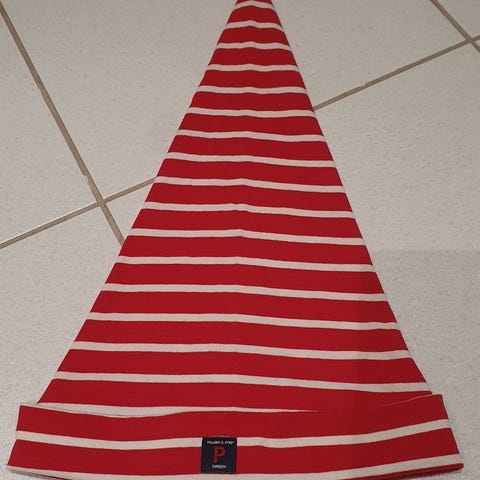 Hyväkuntoiset tonttulakit vauvalle ja taaperolle, pienempi 44/46 ja isompi 48-52. Nimikoitu.