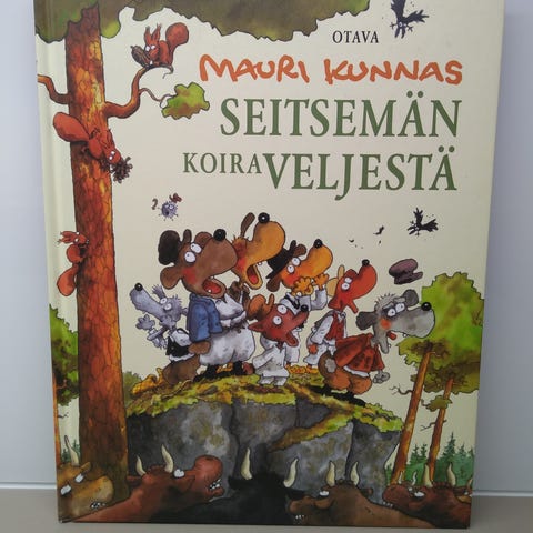 Mauri Kunnaksen kirja Seitsemän koiraveljestä. Kansissa naarmuja ja tahraa mm kynistä. Sisäsivulla kuulakärkikynällä jouluterveiset. Sisältä muuten siisti ja uudenveroinen, tätä ei ole pahemmin luettu.
