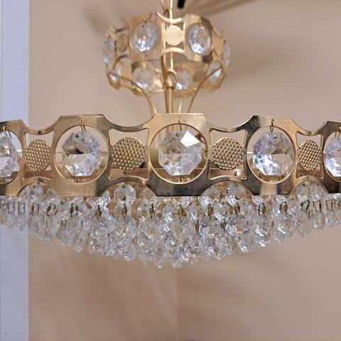 Valaisin, jossa tangossa viisi kristallien ympäröimää valolähdettä, G9-kanta (esim. 5W led) kussakin. Pituus 92 cm. Keittiön pöydän ylle sopiva valaisin.