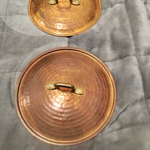 Vanha käsintehty, koristeellisesti kaiverrettu kuparikannu. K.48cm lev.33