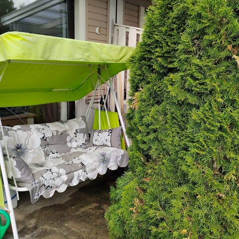 Perinteinen puutarhakeinu. Tukeva rakenne. Maalipinta on hilseillyt paikoittain ja keinu kaipaa uutta maalipintaa. Ehjä ja toimiva.