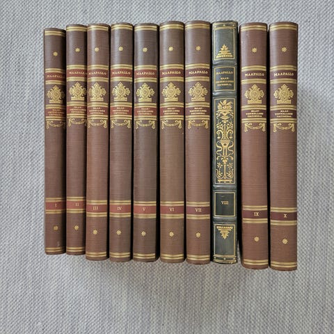 Kansissa hieman kulumaa, muuten hyväkuntoiset