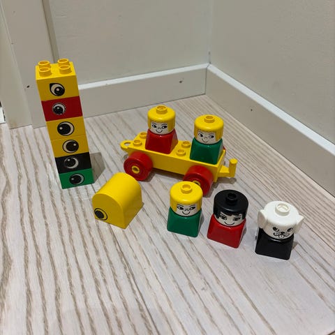 Kulunut äiti-duplo ei kuulu kauppaan.
