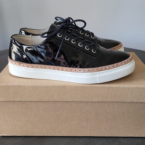 Laadukkaat nahkaiset Whyred Beeton tennarit, mustat ruskealla nahkareunuksella. Koko 40.
