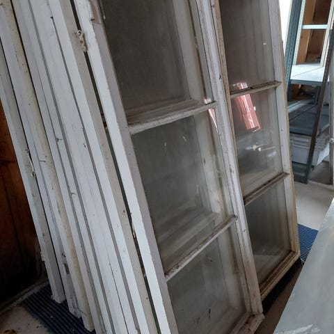 Vanha puinen ikkuna kaltereilla, jossa useita pieniä laseja. Ajan patinaa löytyy.