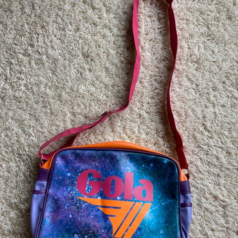 Myydään lasten olkalaukku, kaksi vetoketjullista taskua ja säädettävä olkain, ehjä ja hyväkuntoinen. Nouto.