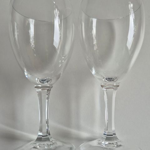 Punaviinilasi, 80-luvulta. Juoma osassa aaltoileva pinta, jalassa kantikas muoto joka levenee alhaalla kukaksi.