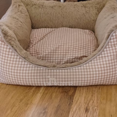 Periaatteessa käyttämätän höyhensaari-koiranpeti (ovh. 129e).