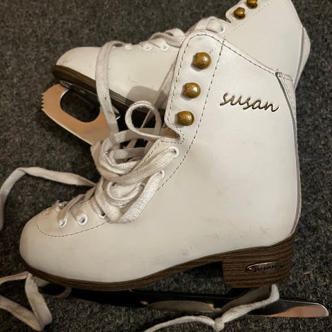 Susan FE10 luistimet lasten koossa 35. Väri valkoinen, materiaali keinonahka. Soveltuvat muuhun luisteluun.