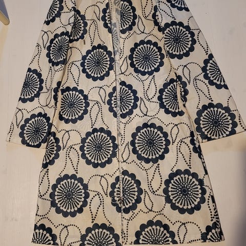 Ehjä ja hyväkuntoinen. Vikana oikeassa hihassa tummat jäljet, jotka ei lähteneet normipesussa. Kuvattu viimeiseen kuvaan. Muutoin kunto oikein siisti. K-k noin 60cm, pituus noin 78cm.