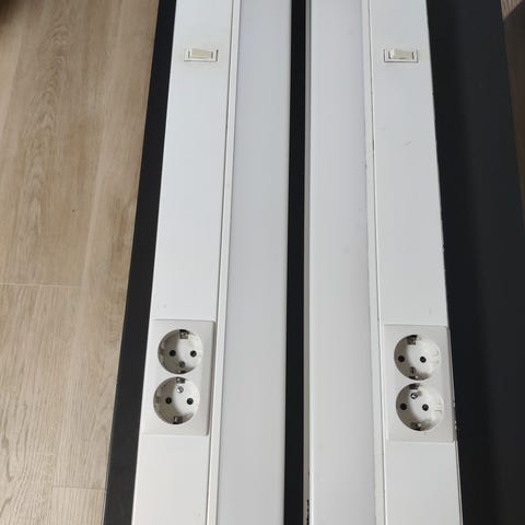 Kylpyhuoneen loisteputkivalaisin kahdella pistorasialla. Leveys 76 cm ( valo-osuus 63,5 cm). Syvyys 8,5 cm valon kohdalta, pistorasian kohdalta 6 cm. Korkeus 6,5 cm. Otettu käytöstä remontin yhteydessä. Nouto Ikaalisten alue. Käteismaksu tai MobilePay.