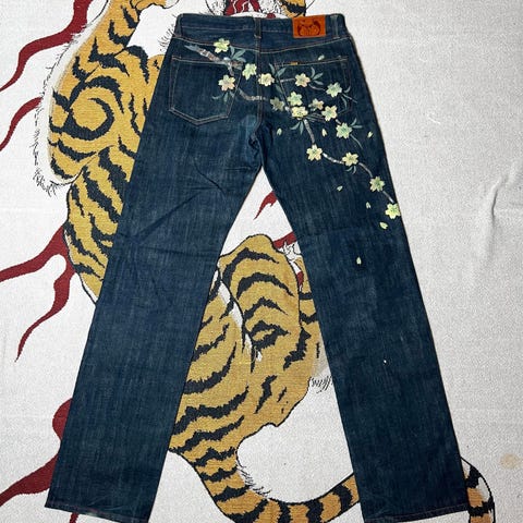 Japanilaiset ZEN sakura-kirsikankukka-aiheiset käsinmaalatut farkut Koko 30