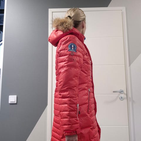 Erittäin lämmin ja mukava takki. Täysin ehjä, paljon taskuja. Meille jäänyt pieneksi. En löytänyt mistään kulumia. Takkia ei ole pesty. Savuton ja eläimetön koti.