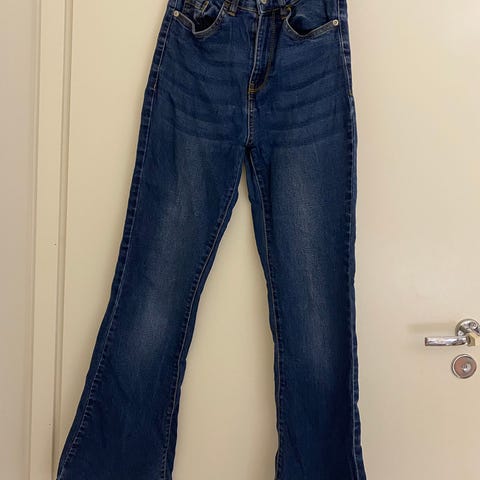 Leveät valkoiset farkut. Pituus n. 107cm. Koko 24/XS
