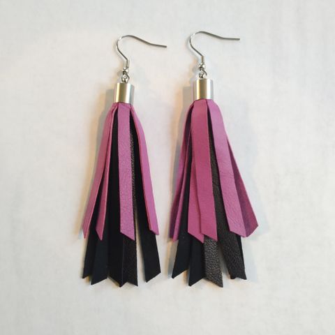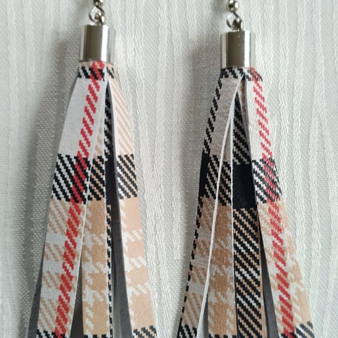 Käsityönä tehdyt korvikset nahkaa, koukut kirurginterästä, 10 € pari.