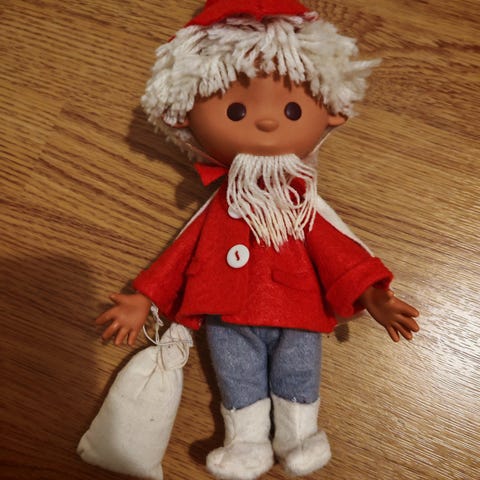 Nukkumatti pehmolelu. Parran liima ajan saatossa kellastunut.