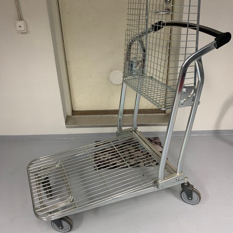 Materiaali kovamuvia. Koko vastaava mitä postinjakeliat ovat käyttäneet. Sopii hyvin ilmaislehtien jakajalle. Isot pyörät tekevät tästä kevyen liikuteltavan. Tavara katsottavissa ja noudettavissa Malmi, Helsinki