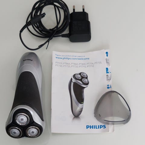 Philips toimiva, terä desinfioutu, käytetty mutta toimiva, sähköllä että ilman. Salkku mukaan.