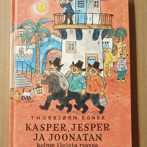 Kasper, Jesper ja Joonatan, kolme iloista rosvoa. Wsoy 1972, suomentanut Aila Meriluoto, 105 sivuinen hyvin kuvitettu hyväkuntoinen kirjaston kirja.