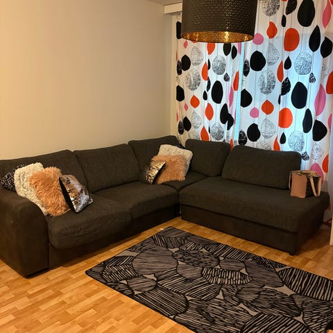 Sohvan leveys 130 cm, selkänojan korkeus 80 cm, istumasyvyys 48 cm. Nojatuolin leveys 60 cm, selkänojan korkeus 80 cm, istumasyvyys 48 cm. Erittäin hyvässä kunnossa. Ei hajuhaittoja. Vähän istuttuja, aina ollut suojakangas päällä. Huom! Samassa talossa ollut kissoja.