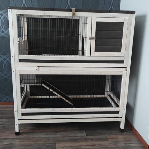 Myydään turkoosi marsunhäkki tarvikkeineen. Käytön jälkiä harmaassa mökissä. Nouto Lappeenranta.
