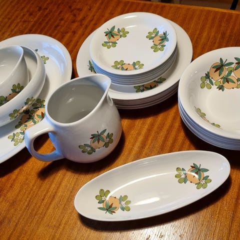 Iki-ihanat Eden lautaset. Kunto käytetty vintage kunto, eli mietoa jälkeä sekä sisä- että ulkopuolella, ei kuitenkaan mitään valtavia lommoja tai riksuja reunoissa. Salaman vääristää jäljet. Löytyy myös kaksi leipä- / pullalautasta, toinen tippunut, joten iso lommo reunassa - kysele,jos kiinnostaa.