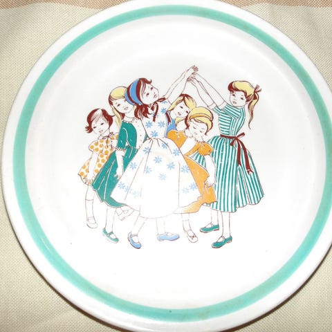 Arabia lasten matala lautanen Tytöt Raija Uosikkinen vuosi 1963