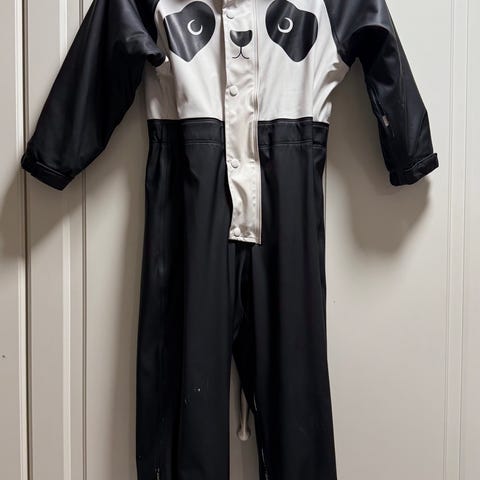Lager157 lasten vuorellinen sadehaalari, koko 110, väriltään vihreä ja musta. Haalarissa on vetoketju edessä, irrotettava huppu. Lämmin fleecevuori. Heijastavat yksityiskohdat. Kuminauhakiristys vyötäröllä. Toisessa polvessa pinta rikki, vaatii paikkauksen, kts. kuva. Lahkeensuista lenkit ja kaksi nappia puuttuu. Nouto tai postikulut ostajalle.