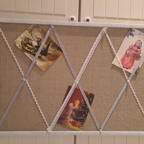 Myynnissä ruskeasävyinen metallia oleva ilmoitustaulu tai muistitaulu. Yhteensä 10 siirrettävää kiinnitysnipsua, kuvissa nipsuja näkyy 2 per rivi, nipsuja voi siirtää myös riviltä toiselle. Lisäksi voi laittaa pieniä pyykkipoikia tms., joilla kortteja tai muistilappuja tai lasten askarteluja jne. kiinnittää.