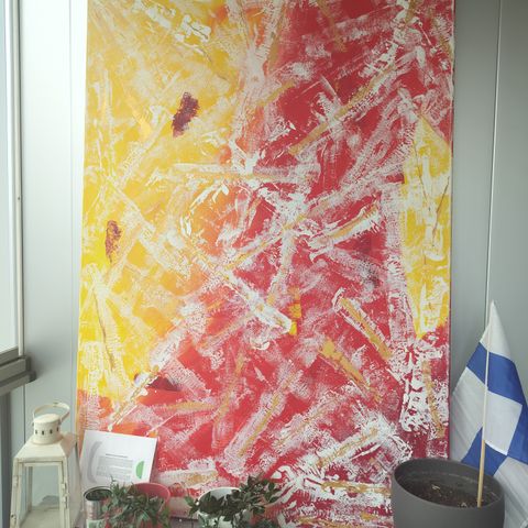 Myydään iso abstrakti taulu tekstuurilla. Koko 100x81 cm. Ripustusvalmis.