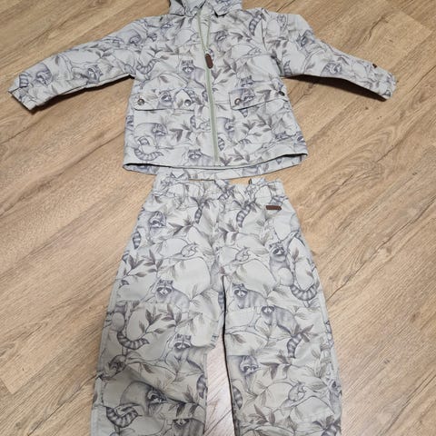 Siistikuntoinen välikausiasu, koko 98 cm. Ainut moite polvissa, siinä hiekasta jäljet. En ole kokeillut pesua. Muutaman kerran parempana pukuna pidetty.