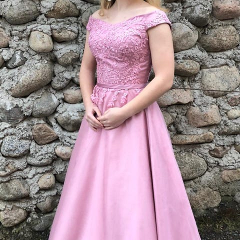 Atelje Iinassa Jyväskylässä teetetty yhdet vanhat nähnyt mekko. Hameosassa alla alushame, sen päällä satiininen hame ja päällikerroksena 2 kerrosta ohuempaa organzan tyylistä kangasta. Tansseissa alla ollut erillinen vannehame. Teetetty 171 senttiselle ja noin 65 kiloiselle. Voin antaa pyydettäessä tarkempia mittoja ja tietoja. Sovituksesta voidaan sopia.