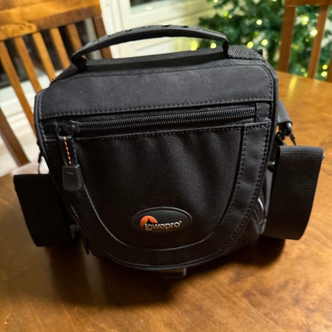 Lowepro Nova 140 AW II, musta, suunniteltu suojaamaan ja kuljettamaan kameraa ja lisävarusteita. Laukussa on pehmustettu sisätila ja useita taskuja järjestelyä varten. Sopii erilaisille kameroille ja on valmistettu kestävästä materiaalista.