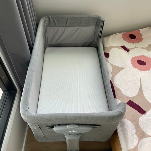 Kompaktin kokoinen kehto / sivuvaunu pyörillä. Keinuu, saa lukittua, laskettava sivulaita poistettavissa, kiinnitys sänkyyn (reunalliseen).