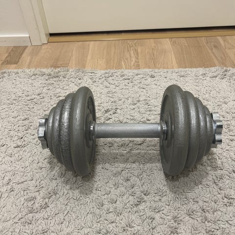 Ylimääräiseksi jäänyt 15kg säädettävä käsipaino.