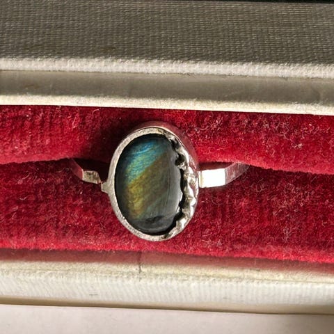 Myyntiin kuvien harvinainen kk rintakoru hieno spektroliitti kivi. Halk. 45mm
