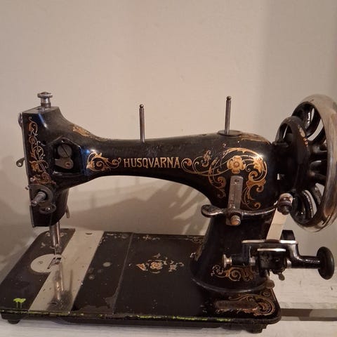 Vanha Tikkakoski ompelukone. Tästä hyvä sisutuselementti.