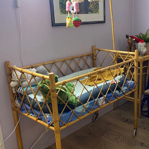 Hieno vauvan sänky, rottinkia.