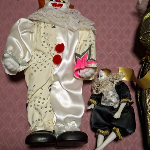 90-luvulta peräisin olevat keräilynuket. Toisen aluslevy on irronnut mikä korjaantuu liimalla