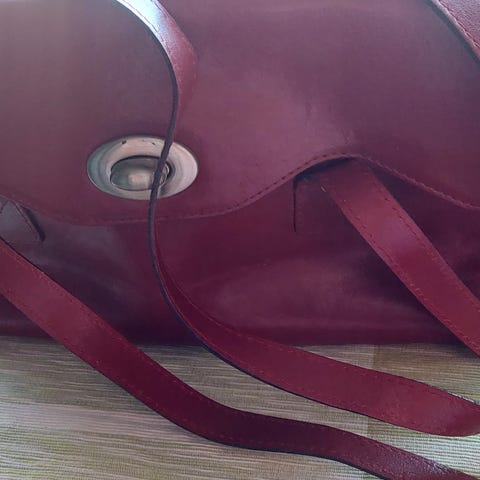 25 cm leveä ja noin 18 cm korkea, syvyys (vetoketju suljettuna) 8 cm. Kaikki nahkaa. Mahdolliset postikulut ostajalle.