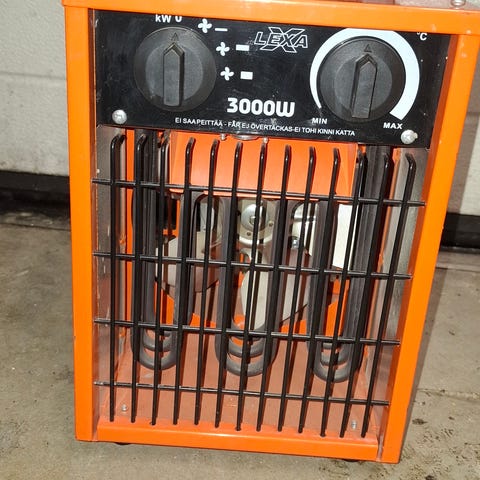 kaksitehoinen (2/3 kW) valovirta rakennuslämmitin. Ruma mutta toimii.