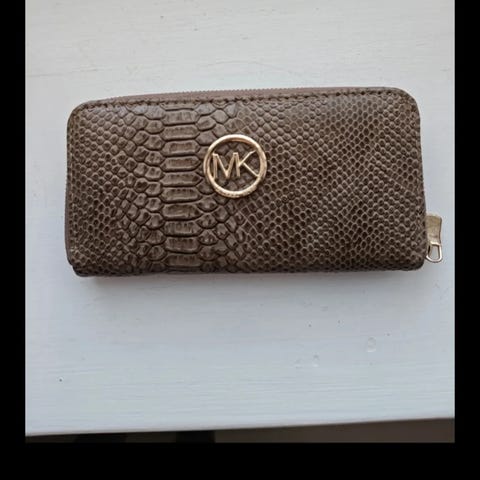 Myydään käyttämätön Michael Korsin tummansininen lompakko rannehihnalla, mitat 15 x 10 cm. Alehinta 20 EUR.