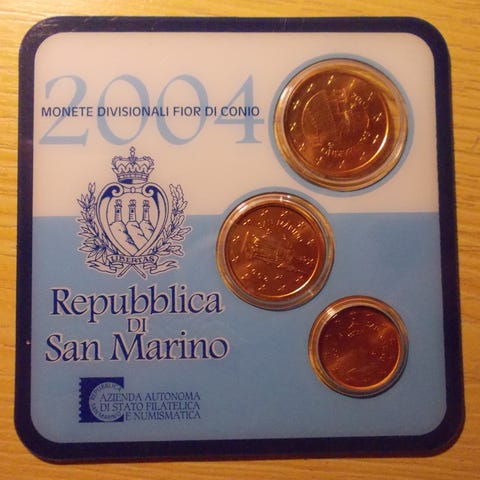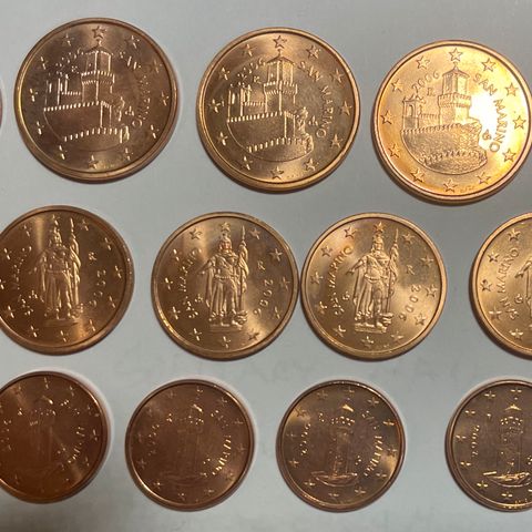 San Marino euro kolikkosarja, UNC, kolikot eri vuosilta