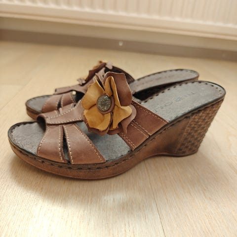Erittäin laadukkaat ja hyväkuntoiset naisten ruskeat nahkaiset kävelykengät. Merkki Rizzo, koko 36,5. Hyvin vähän käytetty, ei naarmuja eikä kulumia. Kaunis kuviointi pinnassa.